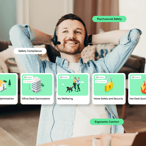 Individual ergonomics, safety, security and wellbeing assessments for modern workers at, home, the office, or hotdesks.