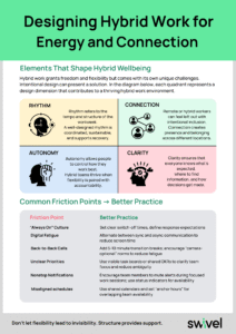 Explore the four dimensions of hybrid wellbeing (rhythm, connection, autonomy, and clarity) and how they shape daily experience.