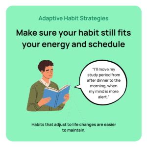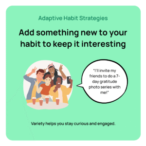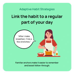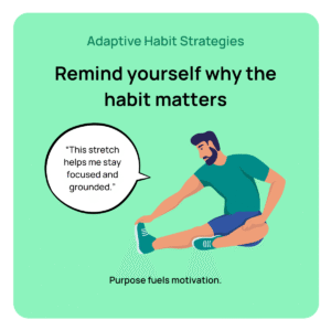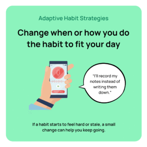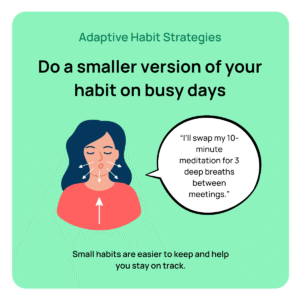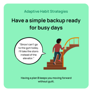 The Adaptive Habit Strategy cards offer quick solutions for common challenges whether you’re too busy, stuck in routine, or losing motivation. They’re designed to help you adapt, not abandon, your wellbeing habits.