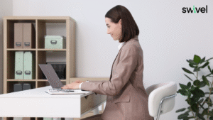 - Slouched shoulders and arms reaching forward (like when typing) increase tension in your upper back, neck, and wrists. This can happen with a poor desk setup.