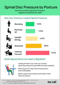 Learn how different sitting and standing postures impact spinal disc pressure, and why small posture shifts can make a big difference to your back health.