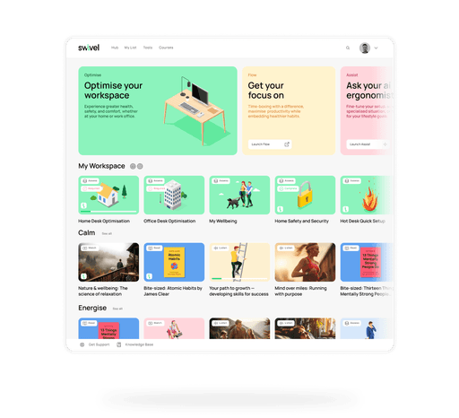 Swivel tailors every recommendation using over 10 billion possible pathways, dynamically adjusting to your equipment and habits. Grounded in ergonomic science and behavioural data, so you get personalised results in just one session.